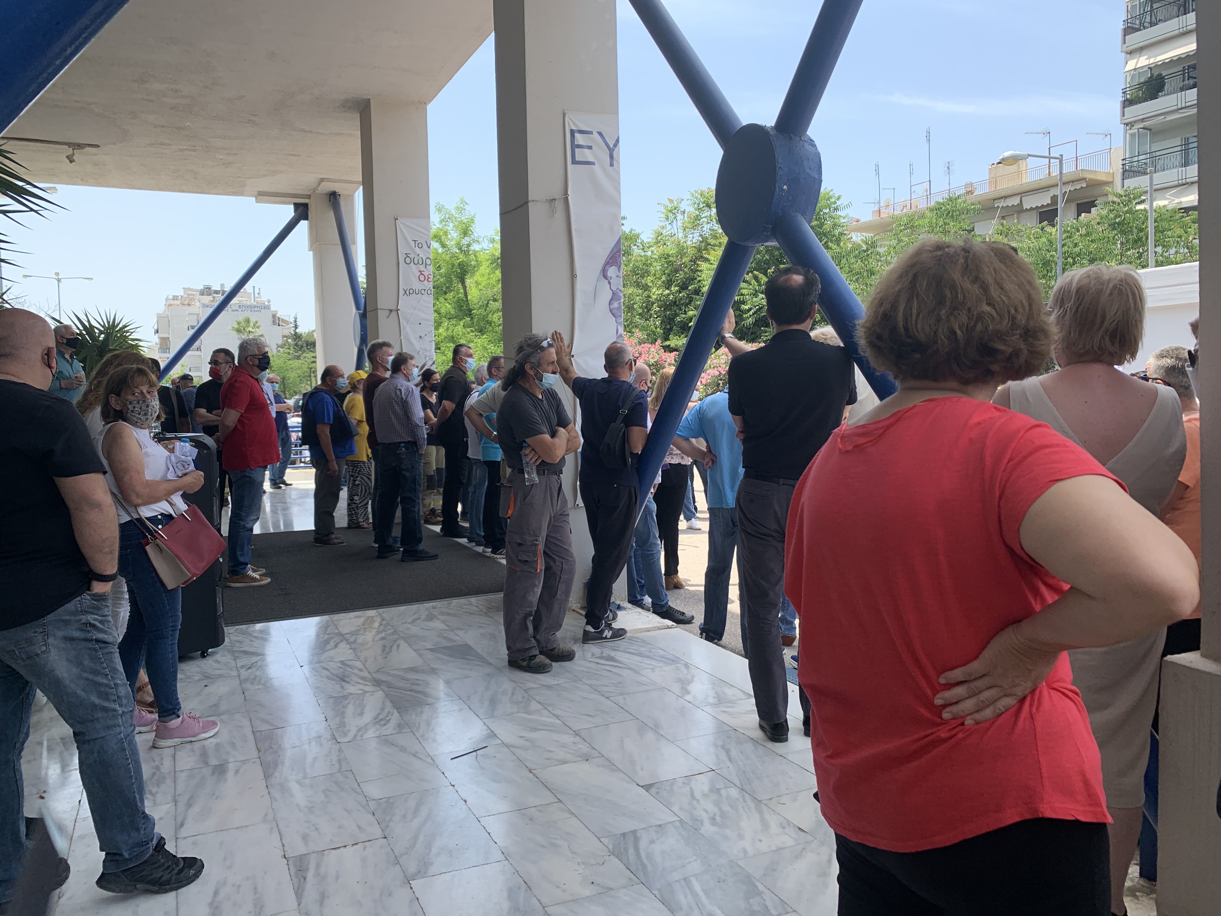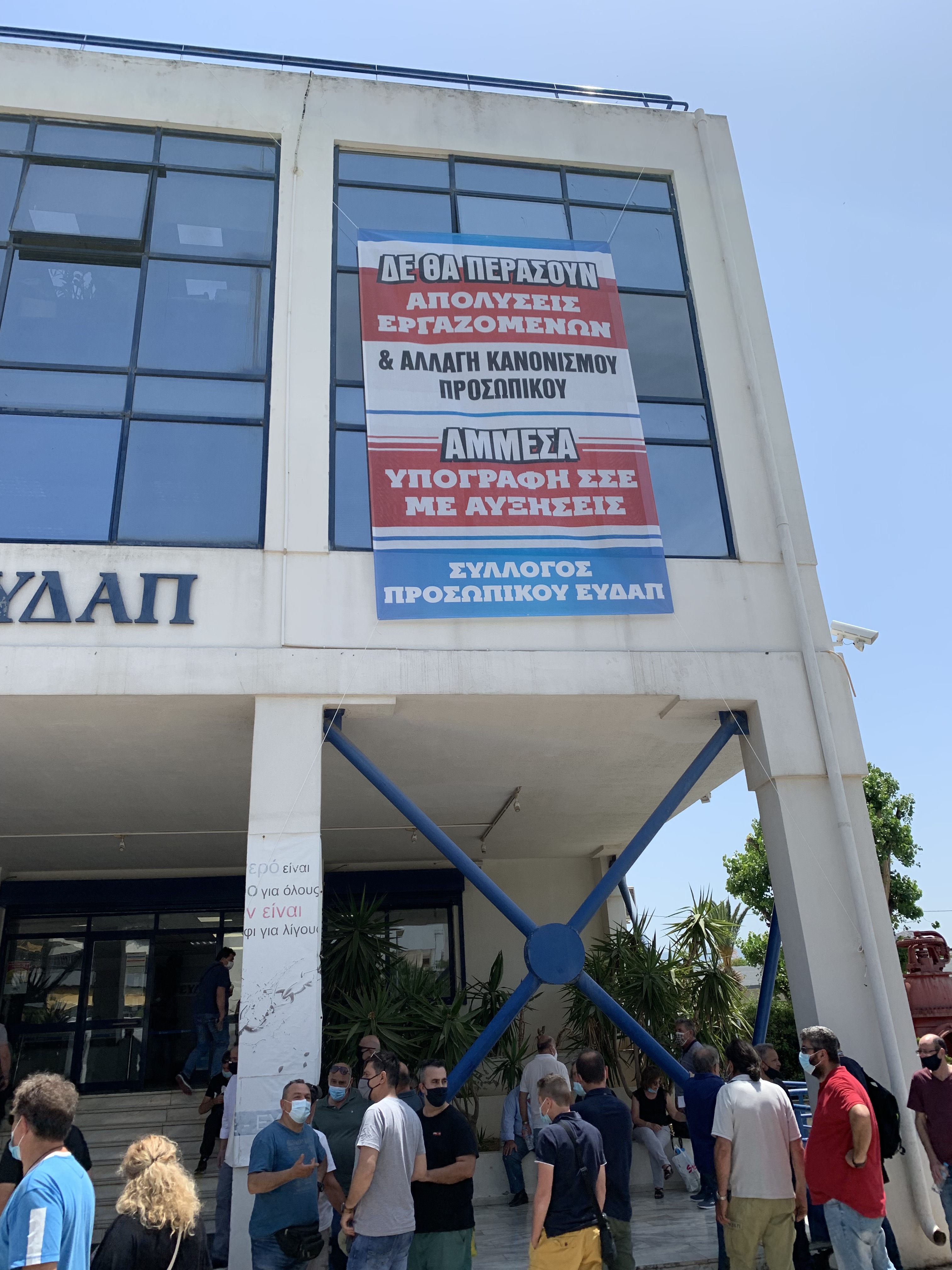 Μετά τις τοποθετήσεις και τις δυναμικές παρεμβάσεις και των παρευρισκόμενων συναδέλφων επιτροπή της ΟΜΕ ανέβηκε στα γραφεία της διοίκησης όπου και μετέφερε την εκπεφρασμένη αντίθεση των συναδέλφων μας στο Διοικητικό Συμβούλιο της ΕΥΔΑΠ ώστε να αποσυρθεί άμεσα το συγκεκριμένο άρθρο