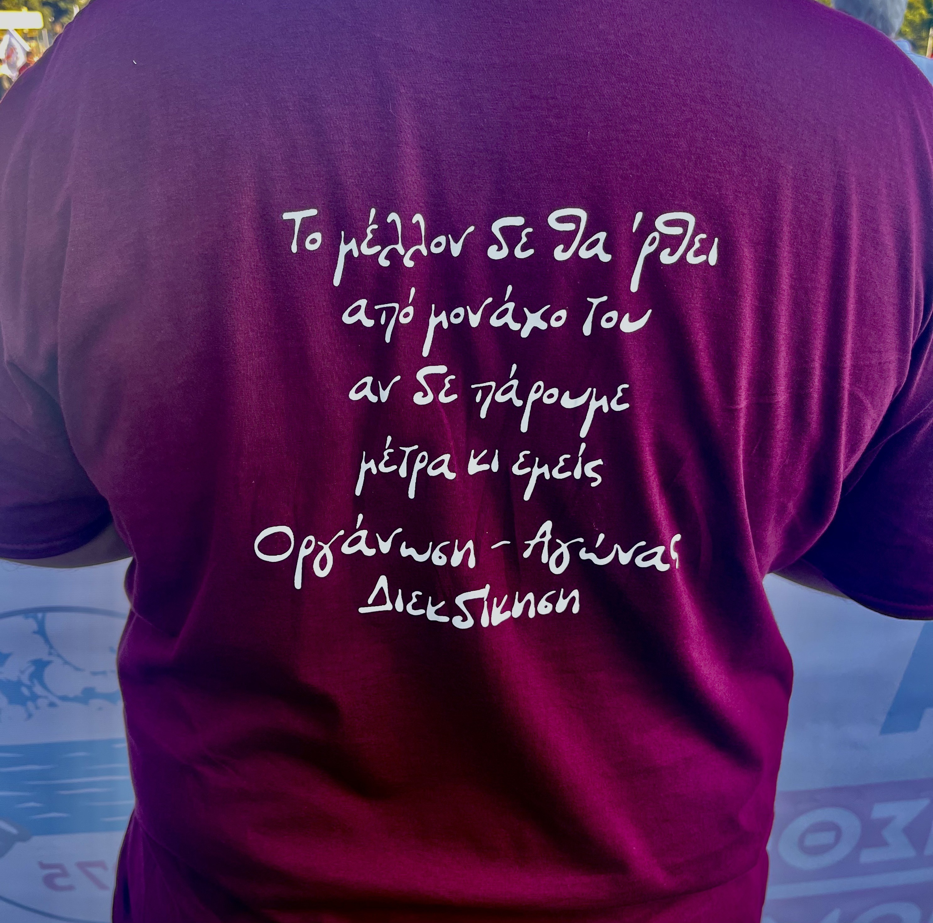 Θετική αίσθηση επίσης έκανε το σύνθημα στο μπλουζάκι του Σωματείου μας