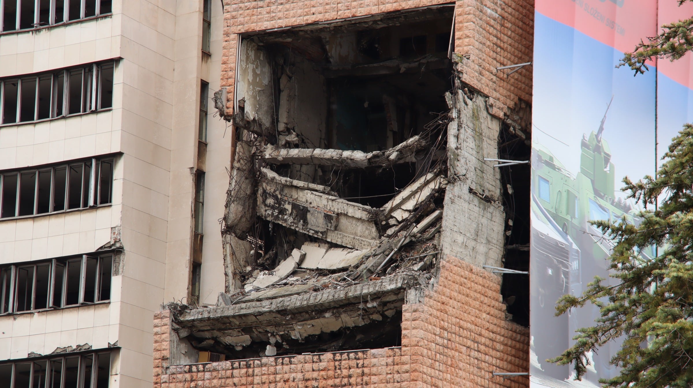 Τρίτος και τελευταίος σταθμός πριν αποχωρήσει η αποστολή για το Νόβι Σαντ ήταν το βομβαρδισμένο σερβικό Πεντάγωνο, το κτίριο του υπουργείου Άμυνας. Το κτίριο αυτό, στην καρδιά του Βελιγραδίου, παραμένει βομβαρδισμένο και δεν έχει αποκατασταθεί, δεν χρησιμοποιείται από τότε, έχοντας μετατραπεί σε ένα ακόμα μνημείο για να μην ξεχαστεί το στυγερό έγκλημα των ΗΠΑ – ΝΑΤΟ – ΕΕ και των κυβερνήσεών τους.