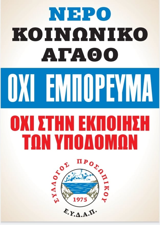 Ο Σύλλογος και βάση των αποφάσεων του δεν πρόκειται να αφήσει το ζήτημα της ιδιωτικοποίησης του νερού να περάσει στα ψιλά, όλα τα μέλη μας στον αγώνα λοιπόν και για το κεντρικό ζήτημα της ιδιωτικοποίησης του νερού με υλικά που θα βγαίνουν κατά καιρούς ενημερώνουμε τους πολίτες παίρνουμε την υπόθεση στα χέρια μας.